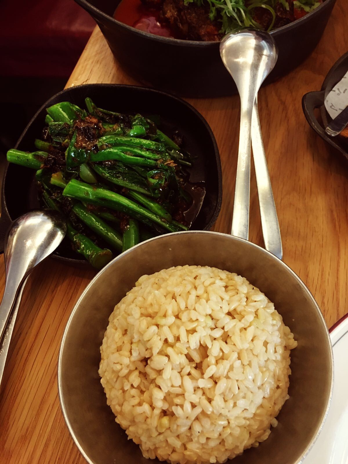 Underestimating our appetites and the serving sizes we then chose the slow cooked Szechuan lamb which came with a savoury pancake side, two servings of Japanese brown rice, and sautéed greens. Come here hungry or with a crew, and early. For dinner Supernormal only takes reservations for large groups – otherwise it’s first come first served.