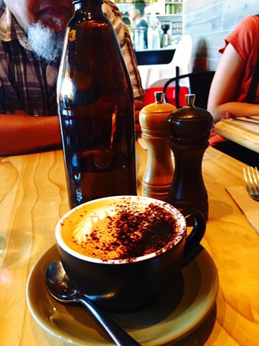 My eldest daughter chose the big breakfast which ended up being hard for her to finish (because of its size alone). My second daughter chose a smaller portioned meal, while my husband and I ordered the same dish (eggs florentine with sides of beef rashers and haloumi – my favorite). Until the evening my stomach still felt full and so I only ate a pear and some strawberries for dinner. The place is quite comfortable – in a busy shopping street, with seating inside and outside. What adds to the fun of this place is the obvious cooperation and teamwork from Anglo-Australian and Muslim workers (including the veiled ones), and we also saw a lot of customers of both Muslim and non-Muslim Australian backgrounds. One thing for me as a lover of coffee, I think there still needs improvement in the coffee-making.