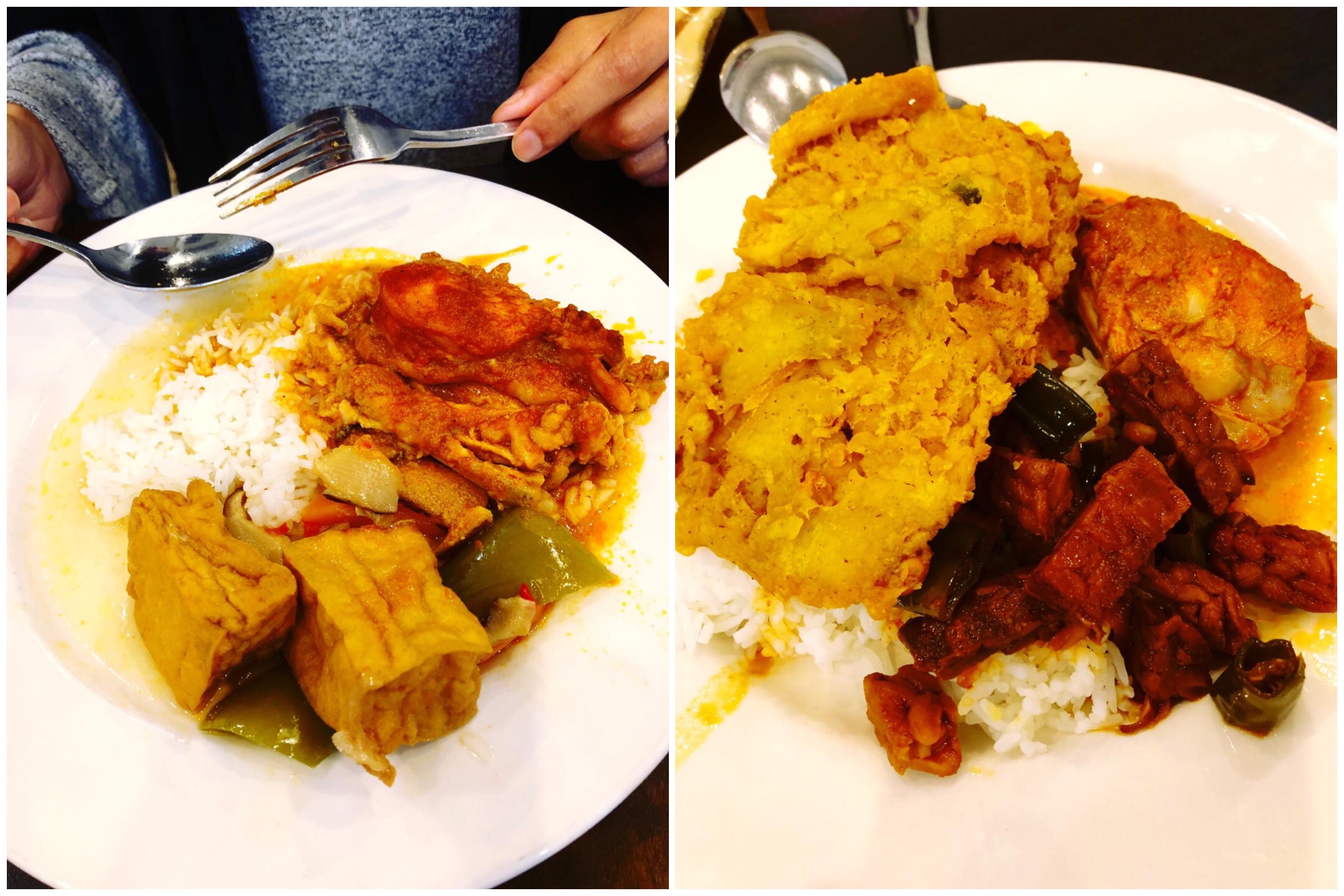 With somewhat limited menu choices and no table service the overheads for this kind of place are a little less. The pioneer here, with an established CBD address and crowded at most times of the day, is Nelayan. The options are visible in the main bain marie – meat (such as rendang), chicken (such as opor), vegetable based stews and curries, and fried tempeh and tofu dishes. There’s often a fish dish though we didn’t see one the last time we visited, and a variety of crackers or snacks. It’s point and choose, with extremely generous amounts of white rice (you can let the server know if you want just a small portion of rice) then you bring your plate to your table (it’s also self-serve water, napkin and cutlery). It’s quick, cheap, simple and filling.