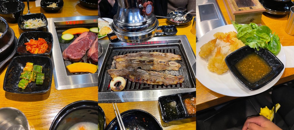Pada “hari donat” dimana pemerintah membolehkan pembeli duduk makan dalam restaurant , aku mengambil kesempatan untuk ikut bersama anak-anak dan cucu-cucu ku yang aku rindu kan. Maklum mereka tinggal jauh dariku sedangkan kita cuma boleh dalam radius 25km saat itu. Pilihan mereka adalah restauran Korea yang halal didaerah tempat aku tinggal dulu. Restaurant ini lebih besar dari yang ada di North Melbourne dan saat kami datang sudah penuh dengan pembeli. Kebanyakan yg datang juga keluarga dengan anak-anak mereka. Makan malam kami di mulai dengan sup ayam dengan nasi serta pumpkin sup yg warnanya sangat menggoda. Kali ini aku membiarkan anak-anakku memesan makanan. Mulai dengan BBQ daging dan beberapa potong sayuran yang menurut aku kurang kalau dilihat jumlah kami yang mau makan . Ketimun yang dibalut wijen,kimchi, tauge ditempatkan didalam mangkok kecil menjadi teman makanan utama. Tidak ketinggalan semangkuk salad dan nasi. Cucu yang kecil memesan udang tempura dan yang laki-laki makanan kesukaannya kentang goreng yang tidak bisa dia lupakan setiap makan. Sejujurnya kami semua merasa sangat kenyang dengan banyaknya daging yang di pesan. Karena ini masih belum suasana bebasdalam ukuran waktu, terpaksa aku harus minum kopi dirumah. Yang penting kami puas dengan makanan dan pelayanan yang cepat dari pelayan direstaurant ini.