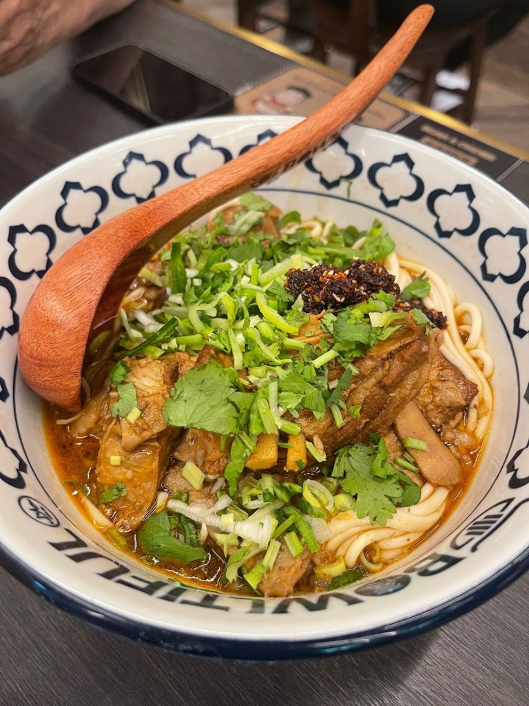 We haven’t yet reviewed this older restaurant, which we’ve tried before, on our Instagram, and YouTube. It’s got branches in a couple of Melbourne suburbs, and we visited the second of their two CBD locations. A halal sign is prominently displayed outside. It’s always busy – we waited outside until a table was free, which didn’t take too long (about ten minutes). Most of the customers seemed to be Asian noodle fans like us. The service is quite fast, but the space is small and filled with tables and chairs. Given the steady stream of customers to focus on, the restaurant’s decor is rudimentary but classic. This time, I chose the dry lamb noodles which I thought was delicious. My daughter and granddaughter chose the vegetarian dry noodles and my husband chose a burger style meal. Everyone was satisfied with their choices, and their portions were very large. With Bowltiful we’re lucky to have yet another option for halal Asian food in Melbourne.